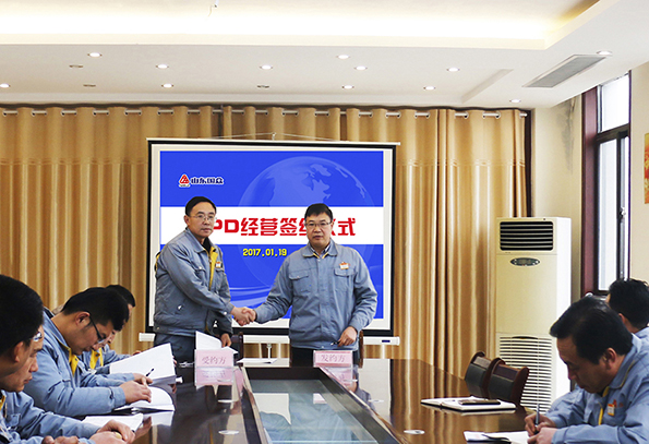 2017年1月19日,公司SPD經(jīng)營簽約儀式,在二樓會議室舉行。公司總經(jīng)理謝文成、常務(wù)副總經(jīng)理劉文吉、崔新平、公司財務(wù)總監(jiān)張美萍出席了此次儀式活動,公司生產(chǎn)制造各個分部經(jīng)理以受約方代表的身份參加了簽約儀式。公司常務(wù)副總經(jīng)理劉文吉主持儀式。